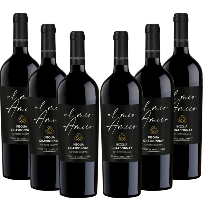 Al Mio Amico Inzolia – Chardonnay is a white wine produced by Tenute dello Jato in western Sicily, near Monreale, in the valley dominated by Monte Jato.