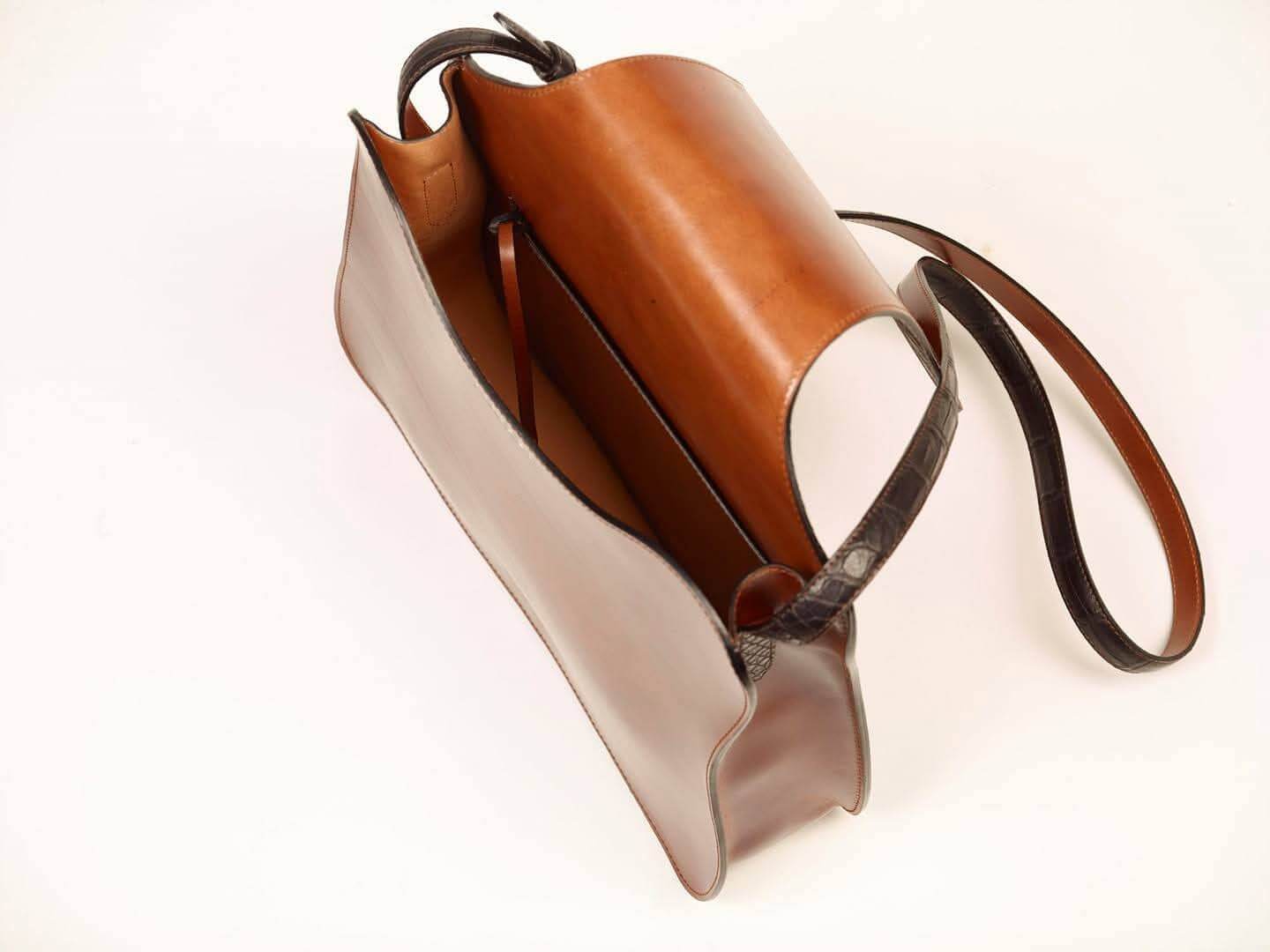 Entirely handcrafted in Italy, the bag is made from precious crocodile leather combined with fine vegetable-tanned leather. Each element is carefully shaped by skilled artisans, preserving a tradition where quality, precision, and authenticity define true luxury.